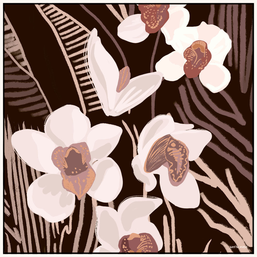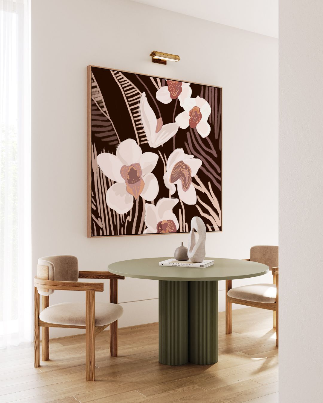 Inspired by the orchid’s ability to grow in dappled light beneath the forest canopy, this piece reflects the quiet resilience that often goes unseen. With its deep tones and soft illumination, The Light Beneath explores the tension between light and shadow, softness and strength.