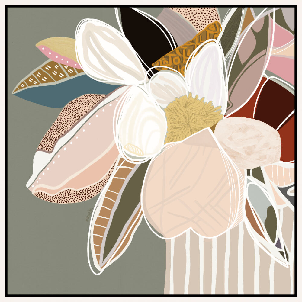 With a refined sage palette and soft abstract florals, this piece evokes that rare feeling of being both grounded and uplifted, held in a moment of quiet beauty. Inspired by the richness of simplicity, Elodie celebrates the kind of grace that doesn’t seek attention, it simply blooms.