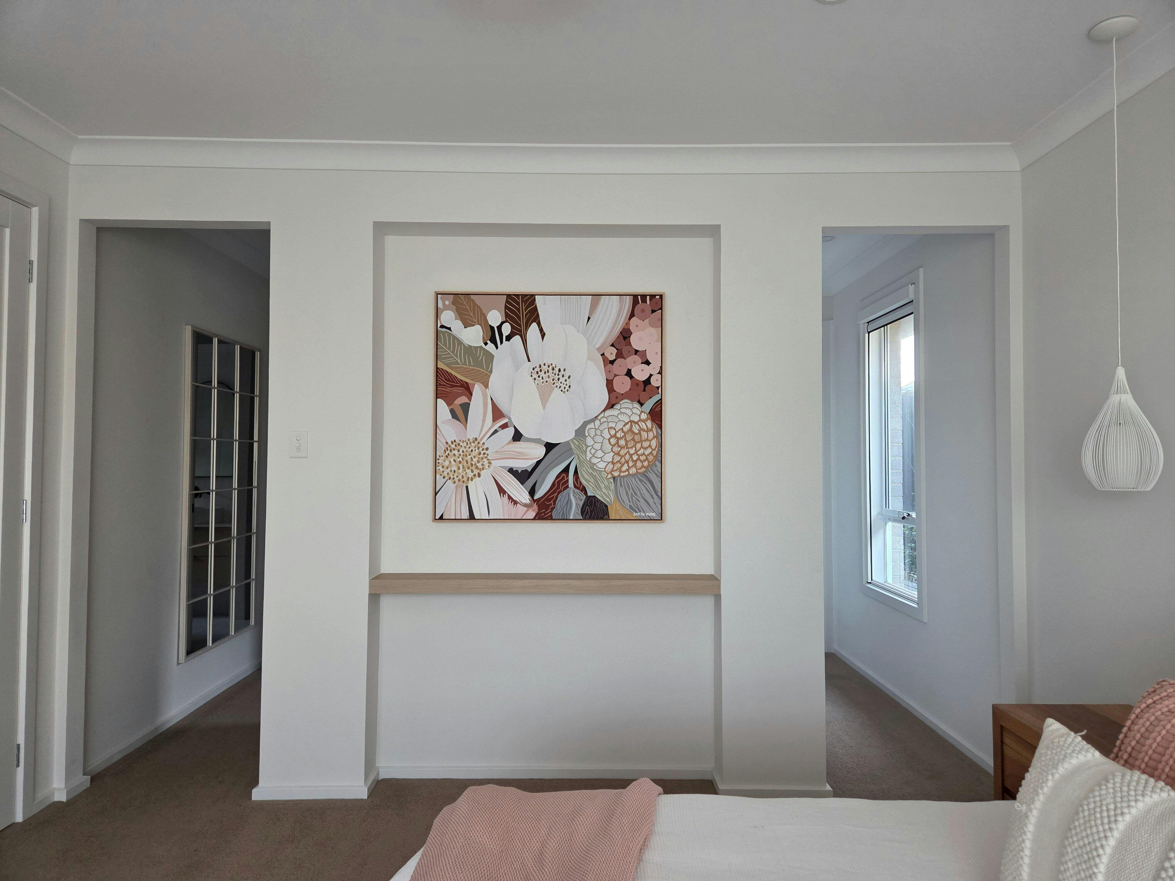 Your artwork arrives stretched and ready to hang, with a wire installed on the back for easy mounting. The canvas wraps neatly around the timber stretcher frame for a clean, modern look that brings a subtle sense of depth to your wall.